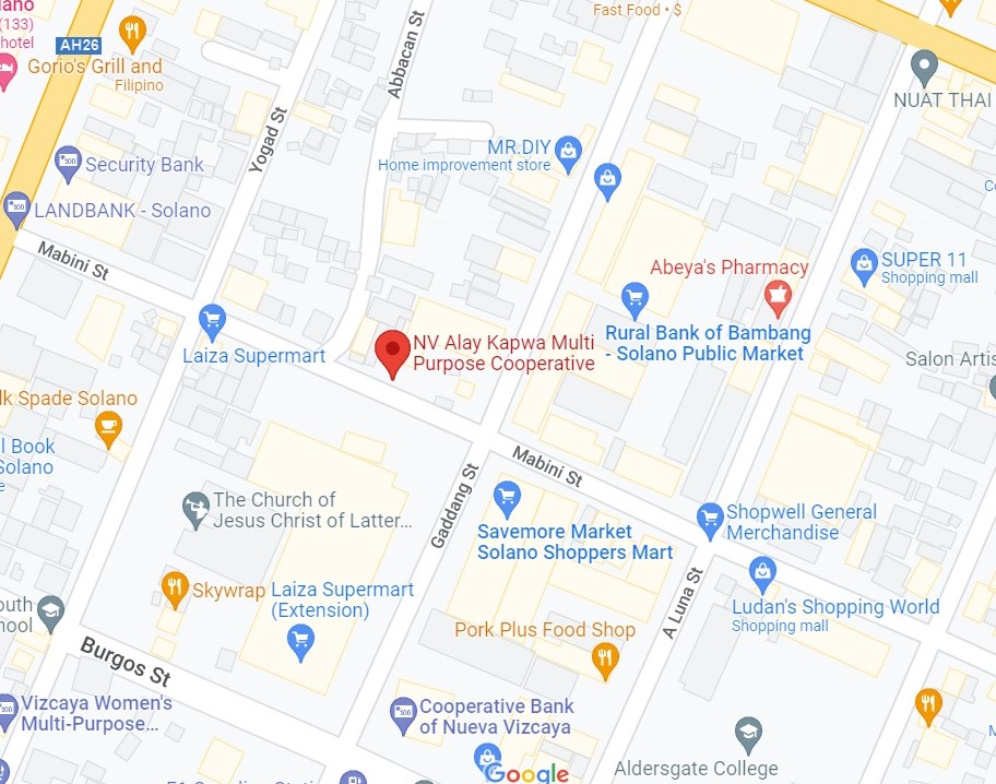 2nd Floor NV Alay Kapwa Cooperative Bldg. Mabini St., Pob. South, Solano, Nueva Vizcaya, Philippines
