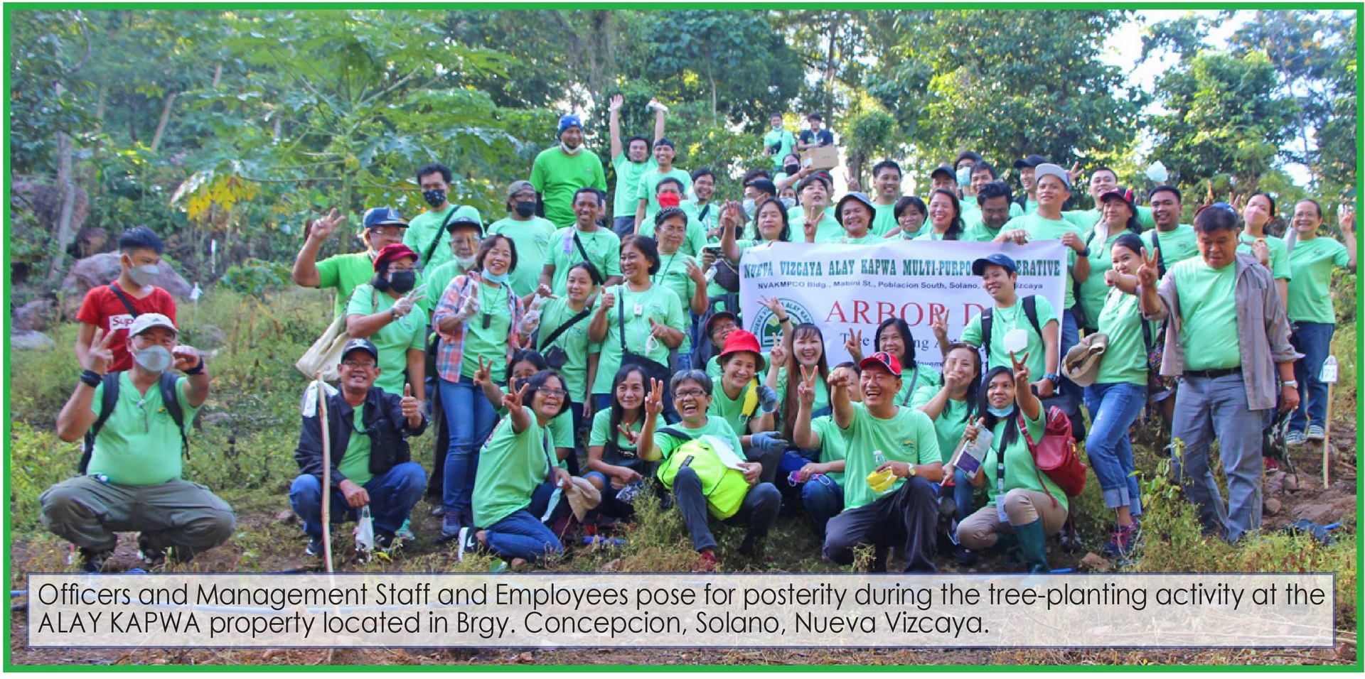 The ALAY KAPWA continuously supports the advocacy of the national and local government in restoring, rehabilitating and re-greening the environment through planting fruit bearing and forest trees in pursuant to Proclamation No. 643: Arbor Day which promotes and aims a healthier ecosystem for the people. |